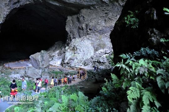 國家旅游地理 廣西河池8月17日訊 游客在廣西河池市鳳山縣三門海景區(qū)游覽壽河源(8月15日攝)。炎炎盛夏,在巖洞里享受別樣清涼,成為越來越多游客的首選。在持續(xù)高溫的助推下,廣西各地巖洞的游客流快速增長,呈現(xiàn)不斷升溫趨勢(shì)。 /新華社記者 周華攝