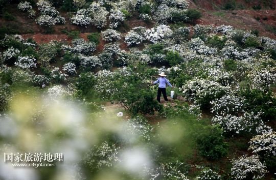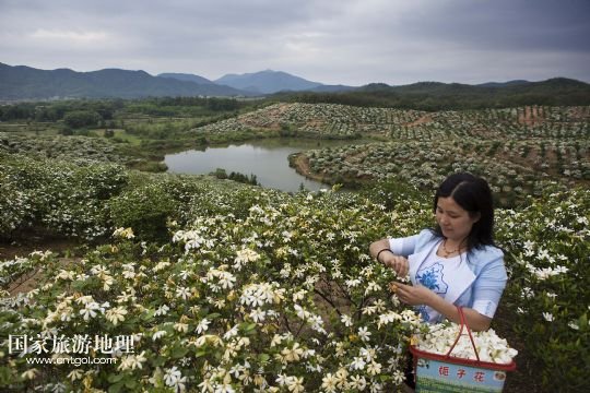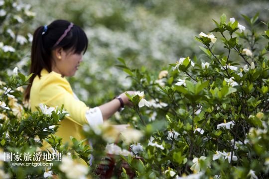 國家旅游地理 江西九江5月24日訊 5月24日,游客在黃梔子種植基地采摘梔子花。小滿時(shí)節(jié),在位于鄱陽湖畔的江西省九江市都昌縣土塘鎮(zhèn)潭湖村的坡嶺上,春輝黃梔子專業(yè)合作社6個(gè)種植基地的兩千多畝黃梔子全面進(jìn)入盛花期,種植園內(nèi)芳香四溢。黃梔子是傳統(tǒng)中藥材,花朵可觀賞、食用,果實(shí)可用于醫(yī)藥、染色、化妝品等領(lǐng)域。成立于2007年的都昌春輝黃梔子農(nóng)民專業(yè)合作社近年來致力于實(shí)施科技推廣、標(biāo)準(zhǔn)化種植和專業(yè)化經(jīng)營黃梔子,將黃梔子從“飄香”經(jīng)濟(jì)延伸到“染色”“藥用”深加工,進(jìn)軍省內(nèi)外市場。 /新華社發(fā)(傅建斌 攝)